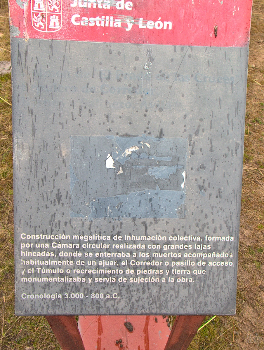 Una vez dentro del prado de las cruces, justo frete a dolmen nos encontramos el segundo cartel: