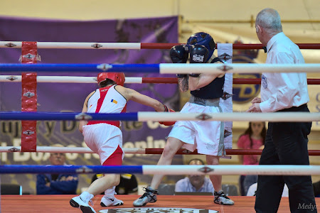 Primero de los combates que fotografié del campeonato de España de boxeo femenino. Nekane Martin contra Eva María Naranjo, peso mosca (51 Kg). Una pena que me pillase a contra mano y solo tenga estas cuatro fotos.
